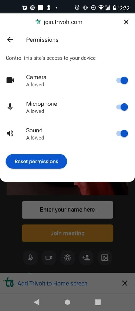 While you’re on https:/my.trivoh.com/meetingid, press the 🔒 (lock) icon on the left side of the browser address bar.Â