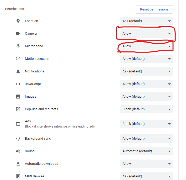 Next, let’s make sure other browser apps can connect to both your mic and camera.Â